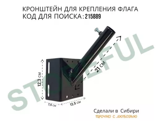 Кронштейн для крепления флага на столб угол 45 градусов "ФЛАГОКРЕП-215889" вылет 21см, сталь,черный