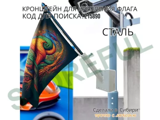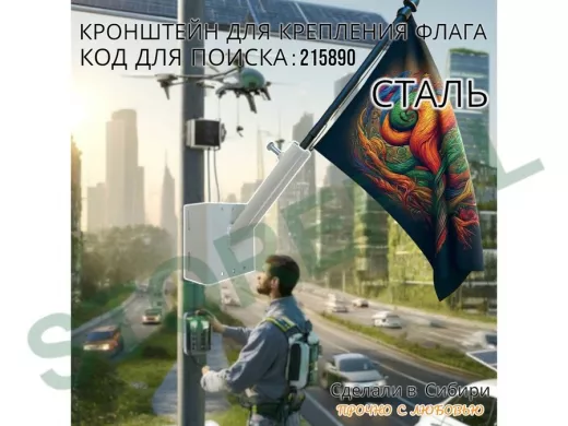 • Кронштейн позволяет быстро и прочно зафиксировать флаг или вазон на столбе без его сверления.