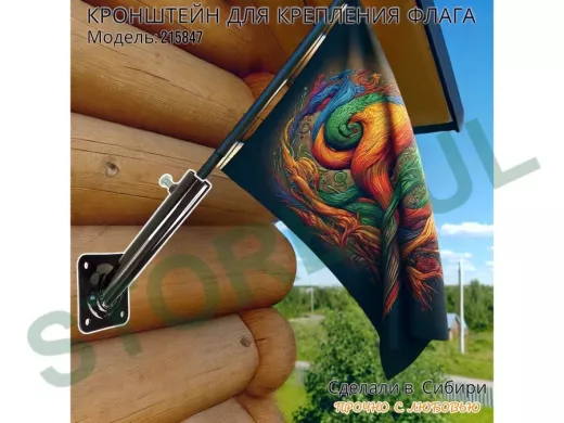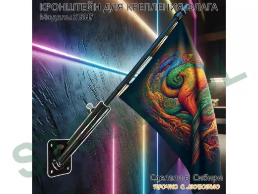 В корзину Купить в 1 клик Кронштейн для крепления одного флага на стене угол 45 градусов "ФЛАГОКРЕП-215847" сталь, цвет черный