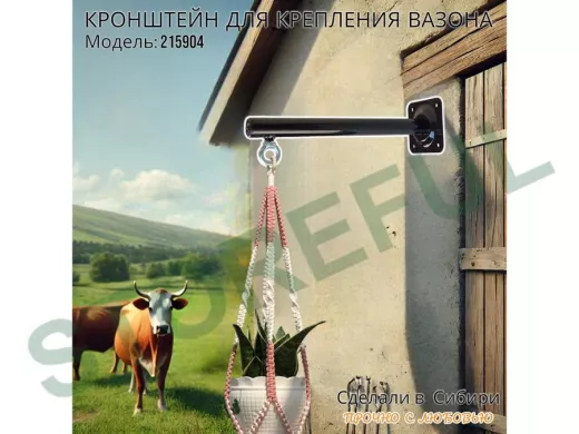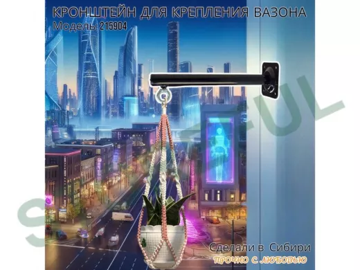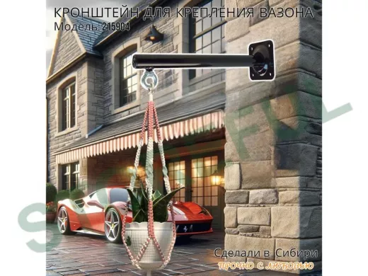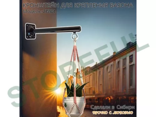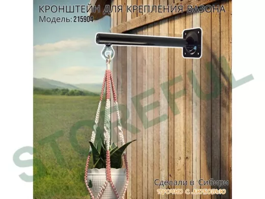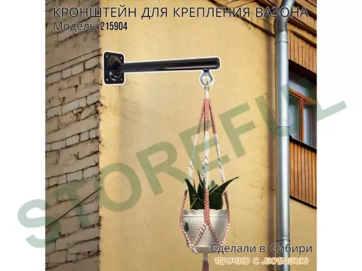 Кронштейн для крепления кашпо, вазона на стене угол 90гр вылет 35см "ПРОСЕКИНО-215904" сталь, черный