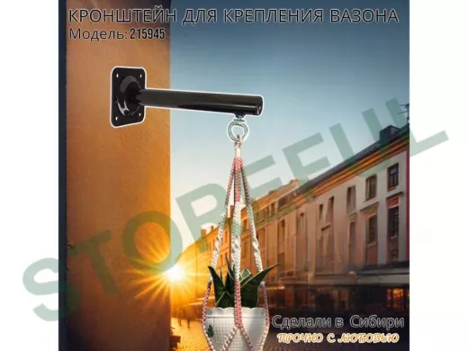 Кронштейн для крепления кашпо, вазона на стене угол 90гр вылет 25см "ПРОСЕКИНО-215945" сталь, черный