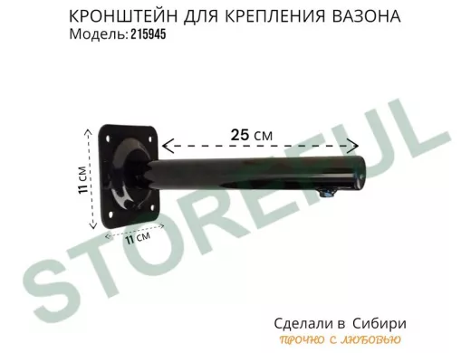 В корзину Купить в 1 клик Кронштейн для крепления кашпо, вазона на стене угол 90гр вылет 25см "ПРОСЕКИНО-215945" сталь, черный