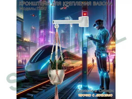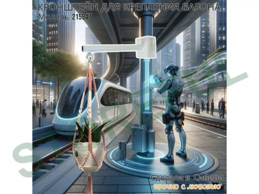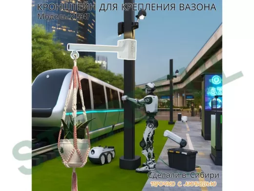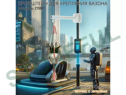 Кронштейн для крепления кашпо на столб угол 90 градусов "ПРОСЕКИНО-215947" вылет 35см, сталь, белый
