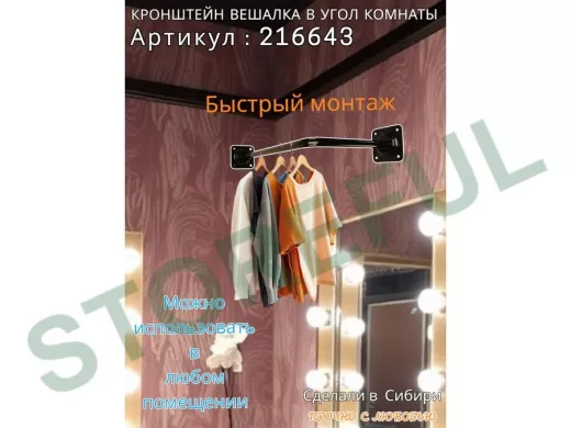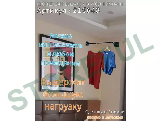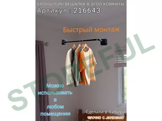 • Кронштейн для плечиков с одеждой, используется для установки в угол комнаты или к потолку.