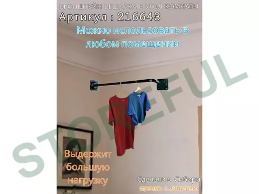 • Благодаря угловой форме, вешалка занимает меньше места, что особенно актуально для небольших помещений.