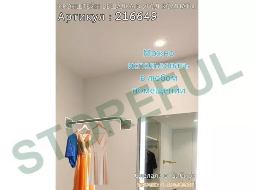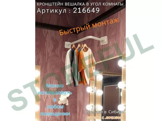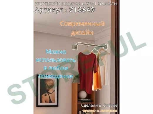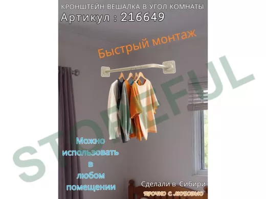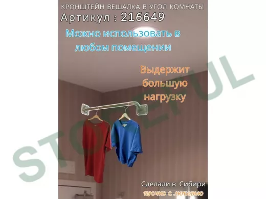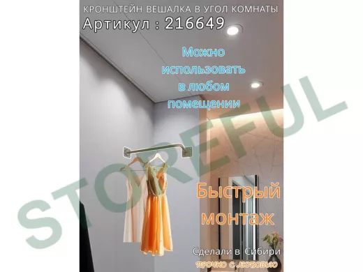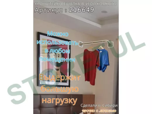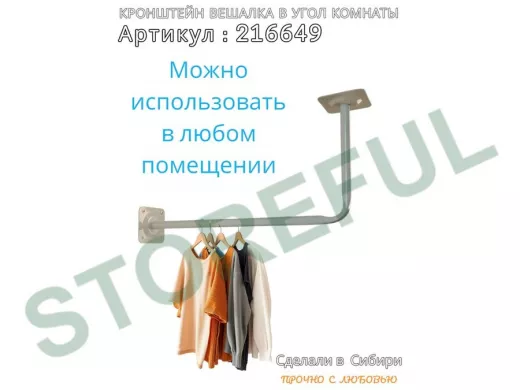 • Кронштейн для плечиков с одеждой, используется для установки в угол комнаты или к потолку.