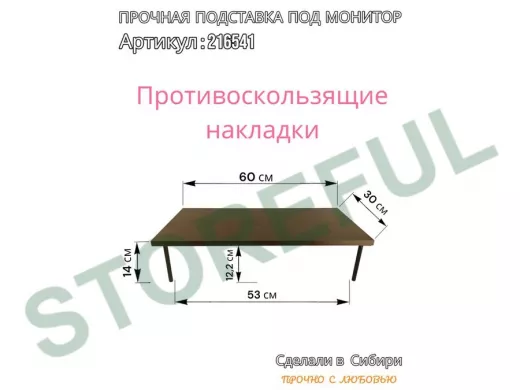 В корзину Купить в 1 клик Подставка под монитор на стол 60х30см высота 14см "ABBIKUS-216541" венге, черные ножки
