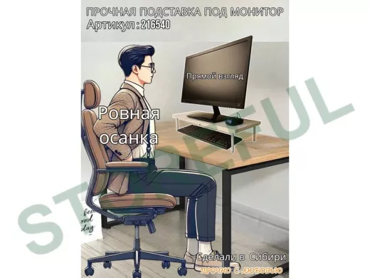 • Универсальная подставка для монитора имеет лаконичный и стильный дизайн, идеально подойдет для любого интерьера.