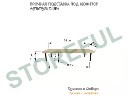 В корзину Купить в 1 клик Подставка под монитор на стол 54х22см высота 11см, сосна выбеленная "ABBIKUS-216562" черные ножки