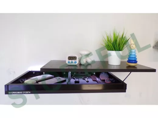 В корзину Купить в 1 клик Парящая полка скрытого крепления с подсветкой и тайником, черный "SVORKAMAX 212874" 60х30 см, венге