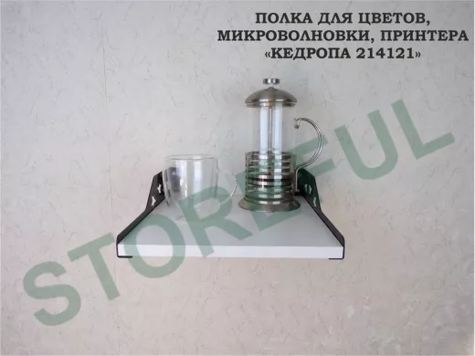 • Полка предназначена для цветов, сувениров, декоративных мелочей, можно использовать на кухне для хранения посуды, мелкой бытовой техники, специй и тд.