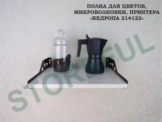 • Полка предназначена для цветов, сувениров, декоративных мелочей, можно использовать на кухне для хранения посуды, мелкой бытовой техники, специй и тд.