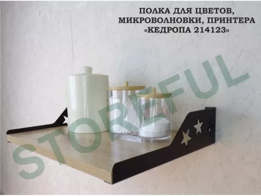 • Полка предназначена для цветов, сувениров, декоративных мелочей, можно использовать на кухне для хранения посуды, мелкой бытовой техники, специй и тд.