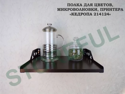 • Полка предназначена для цветов, сувениров, декоративных мелочей, можно использовать на кухне для хранения посуды, мелкой бытовой техники, специй и тд.