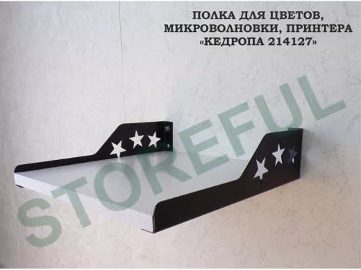 • Полка предназначена для цветов, сувениров, декоративных мелочей, можно использовать на кухне для хранения посуды, мелкой бытовой техники, специй и тд.