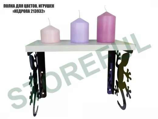Полка для цветов, игрушек, сувениров "КЕДРОПА-213932 гекон" размер 15х30х24 см, сосна