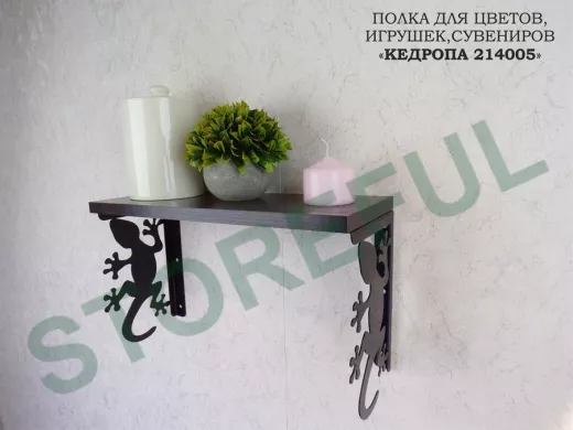 В корзину Купить в 1 клик Полка для цветов, игрушек,сувениров "КЕДРОПА-214005 гекон" размер 15х40х24 см, венге