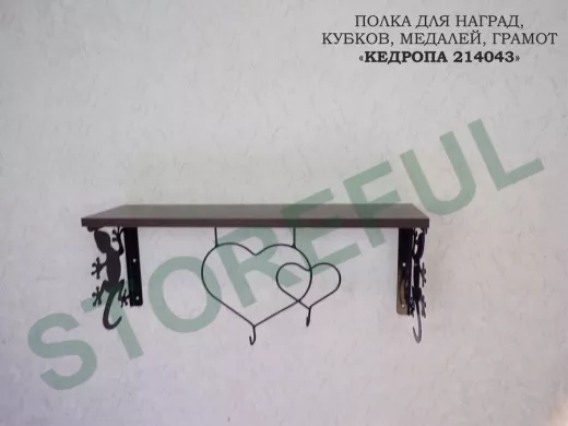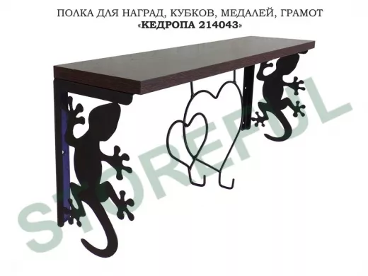 В корзину Купить в 1 клик Полка для наград, кубков, медалей, грамот "КЕДРОПА-214043 гекон" размер 15х60х24 см, венге с сердцем