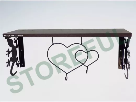 Полка для наград, кубков, медалей, грамот "КЕДРОПА-214043 гекон" размер 15х60х24 см, венге с сердцем