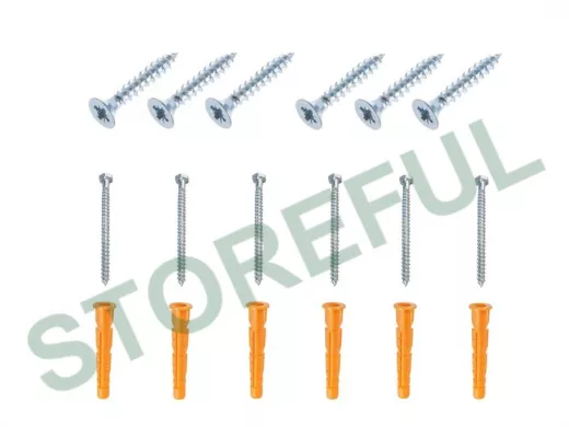 • Надежно крепится к стене, крючки крепятся к полке двумя шурупами.