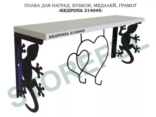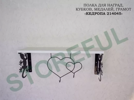 Полка для наград, кубков, медалей, грамот "КЕДРОПА-214045 гекон" размер 15х60х24 см, сосна с сердцем