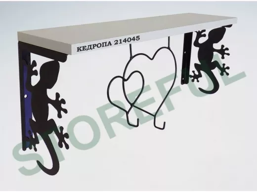 • Интересная полка с профилем гекона и двумя крючками, позволит разнообразить интерьер, сделать его непохожим, уникальным, запоминающимся.