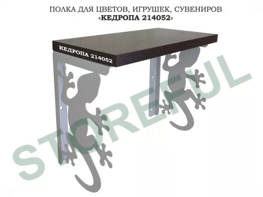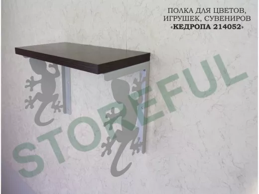 В корзину Купить в 1 клик Полка для цветов, игрушек, сувениров "КЕДРОПА-214052 гекон" размер 15х30х24 см, серый, венге
