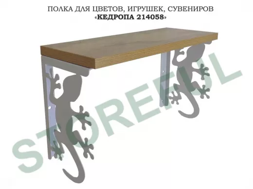 В корзину Купить в 1 клик Полка для цветов, игрушек,сувениров "КЕДРОПА-214058 гекон" размер 15х40х24 см, серый, дуб вотан