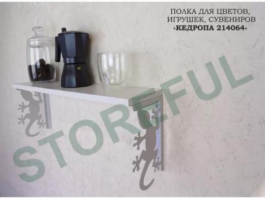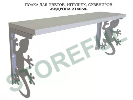 Полка для цветов, игрушек,сувениров "КЕДРОПА-214064 гекон" размер 15х60х24 см, серый, сосна