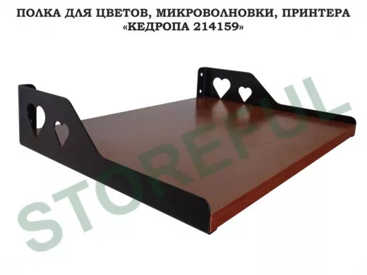 В корзину Купить в 1 клик Полка для цветов, микроволновки, принтера "КЕДРОПА-214159" размер 40х30х10 см, орех, сердце