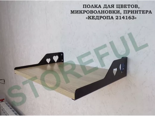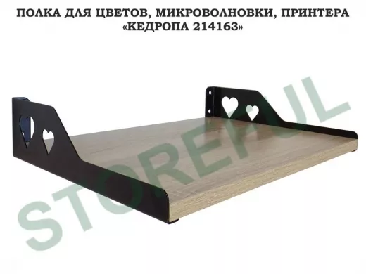 В корзину Купить в 1 клик Полка для цветов, микроволновки, принтера "КЕДРОПА-214163" размер 40х30х10 см, дуб сонома, сердце