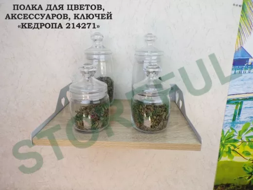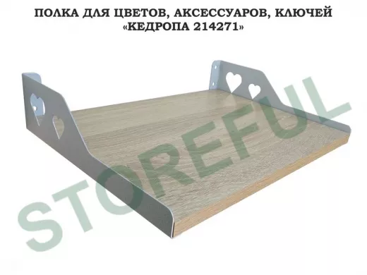 В корзину Купить в 1 клик Полка для цветов, аксессуаров, ключей "КЕДРОПА-214271" размер 40х30 см, дуб сонома, сердце