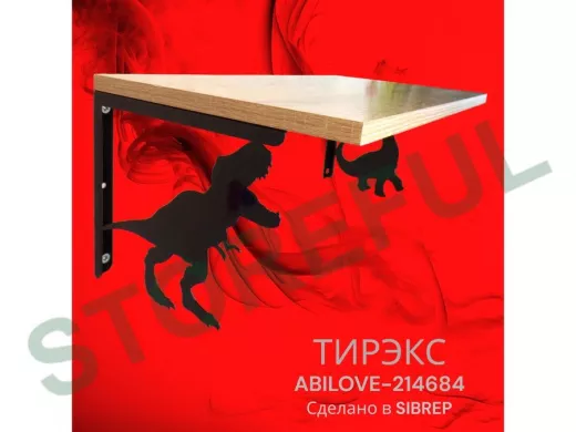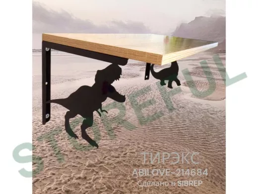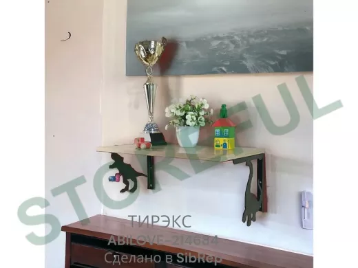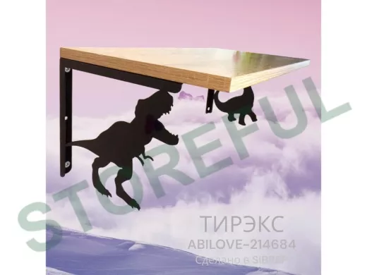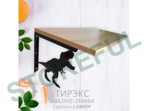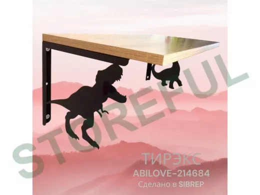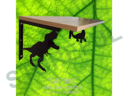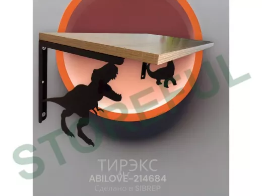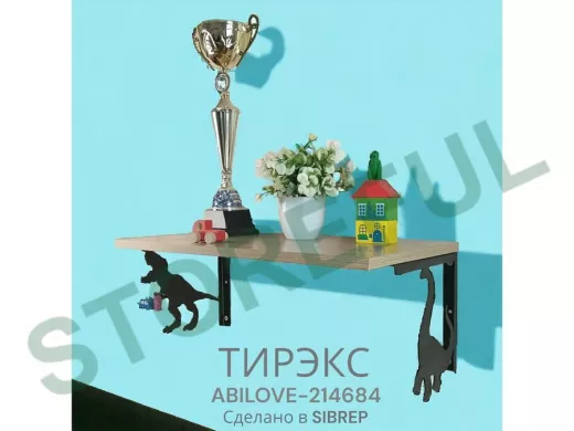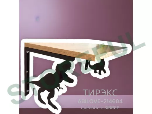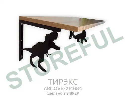 Полка с динозаврами "ТИРЭКС ABILOVE-214684" для конструкторов, машинок, дуб сонома, 30х60см