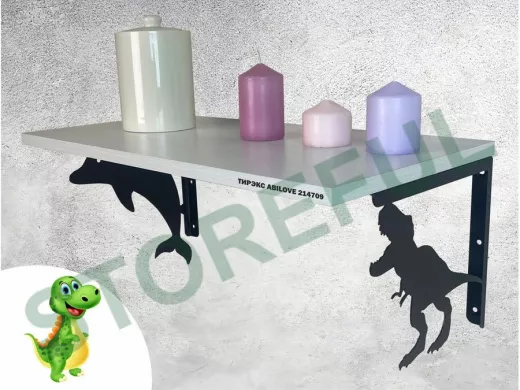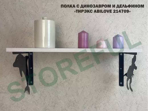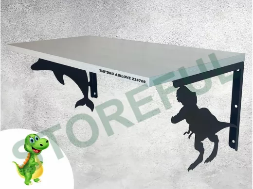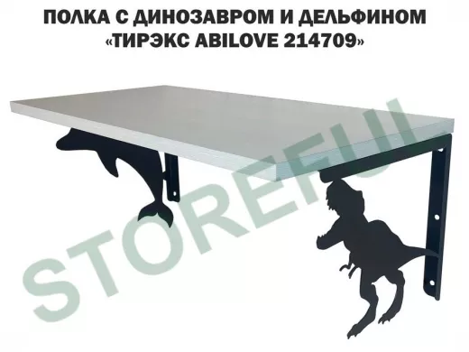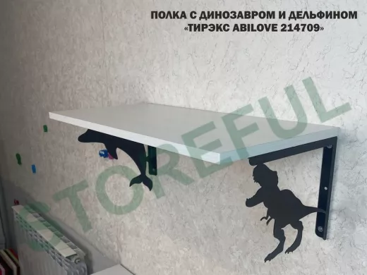Полка с динозавром и дельфином "ТИРЭКС ABILOVE-214709" для игрушек, сосна выбеленная, 30х60см