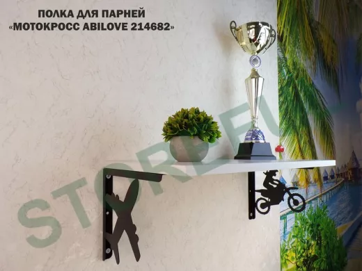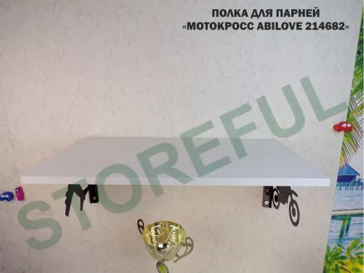 Полка для парней "МОТОКРОСС ABILOVE-214682" для кубков и аксессуаров, сосна выбеленная, 30х60см