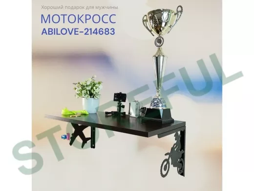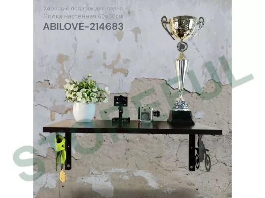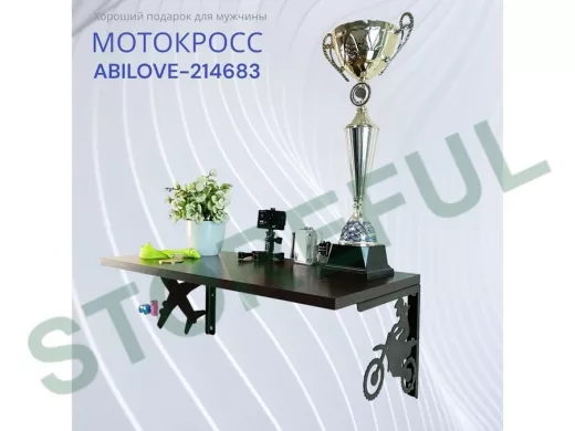 Полка для парней "МОТОКРОСС ABILOVE-214683" для кубков и аксессуаров, венге, 30х60см