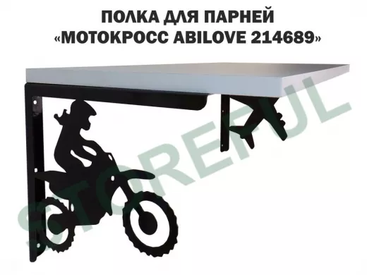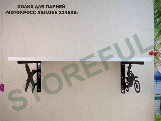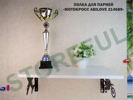 Полка для парней "МОТОКРОСС ABILOVE-214689" для кубков и аксессуаров, белая, 30х60см