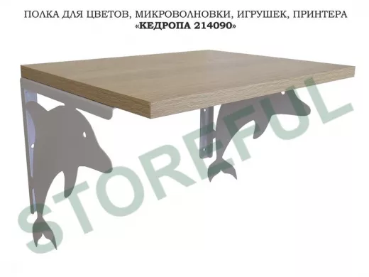 В корзину Купить в 1 клик Полка для цветов, микроволновки, игрушек, принтера "КЕДРОПА-214090"размер 30х40x30 см, серый, дуб