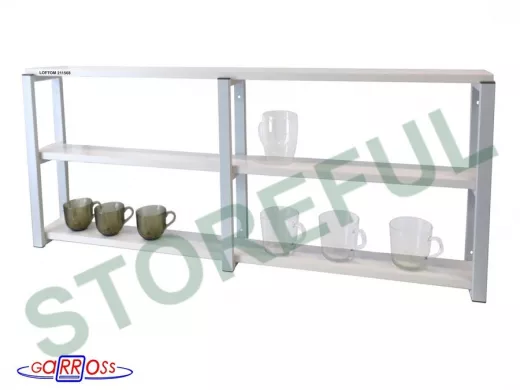 В корзину Купить в 1 клик Полка для вина и бокалов, высота 42см, 3 уровня, размер 10х120см, серая "LOFTOM 211568" сосна