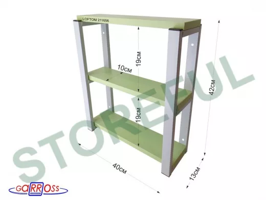 Полка для вина и бокалов, высота 42см, 3 уровня, размер 10х40см, серая "LOFTOM 211656" салатовый