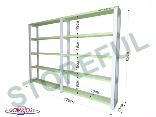 Полка для вина и бокалов, высота 82см, 5 уровней, размер 10х120см, серая "LOFTOM 211661" салатовый