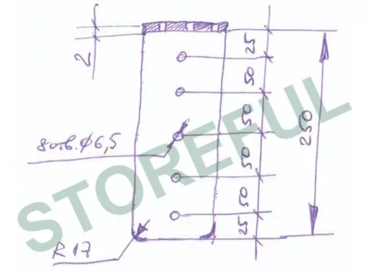 "ПАПРИКА-250-L1-SL" кронштейн под хром для скрытого крепления полок,80х250х2мм, 9отв.6,5мм,без полки