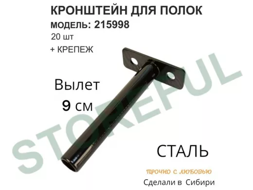 Кронштейн для скрытого крепления полок, 12х90мм, черный, в наборе 20шт "SVORKAMAX-215998" без полки