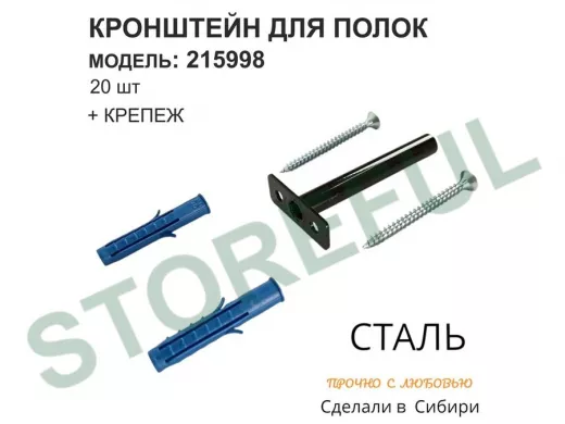 В корзину Купить в 1 клик Кронштейн для скрытого крепления полок, 12х90мм, черный, в наборе 20шт "SVORKAMAX-215998" без полки