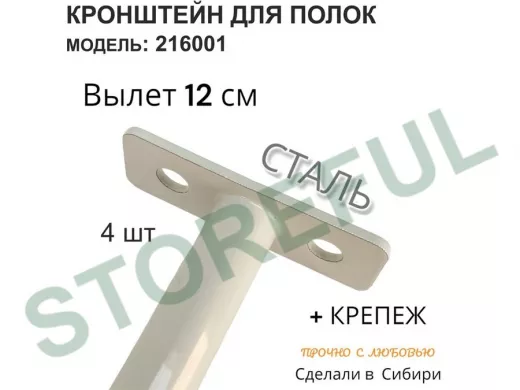 Кронштейн для скрытого крепления полок,12х120мм, серый, в наборе 4шт "SVORKAMAX-216001" без полки
