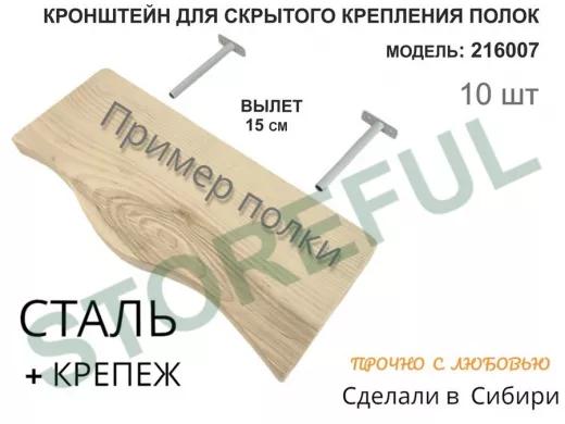 Кронштейн для скрытого крепления полок,12х150мм, серый, в наборе 10шт "SVORKAMAX-216007" без полки