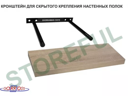 • Кронштейн сдвоенный предназначен для скрытого крепления полок, изготовленных из различных материалов: МДФ, ДСП, дерево, пластик.