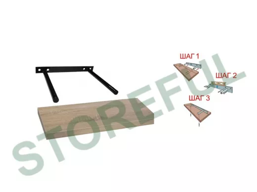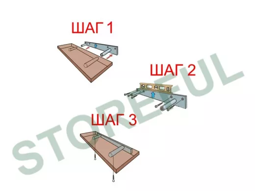 • На кронштейны плотно надевается полка, в торце которой проделаны отверстия диаметром 12 мм.