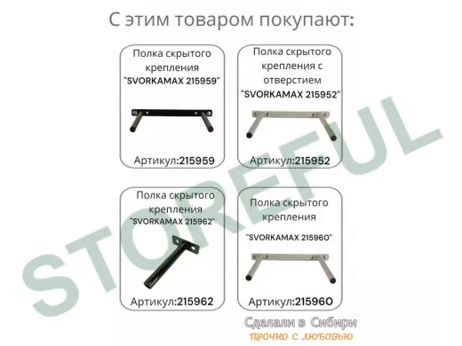 Кронштейн 1 шт для полок скрытого крепления, длина 150 мм с 5отверст. "SVORKAMAX-18736" 12мм, черный