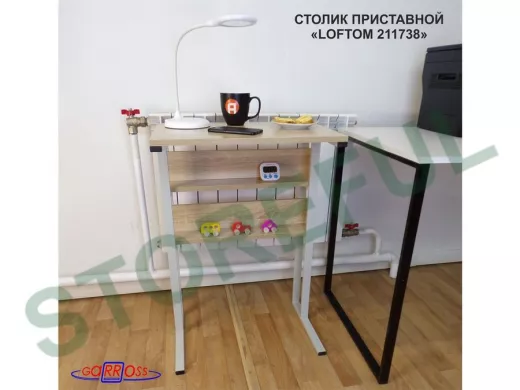 В корзину Купить в 1 клик Столик приставной, 79 см, серый "LOFTOM 211738" прикроватный стол журнальный с двумя полками, дуб